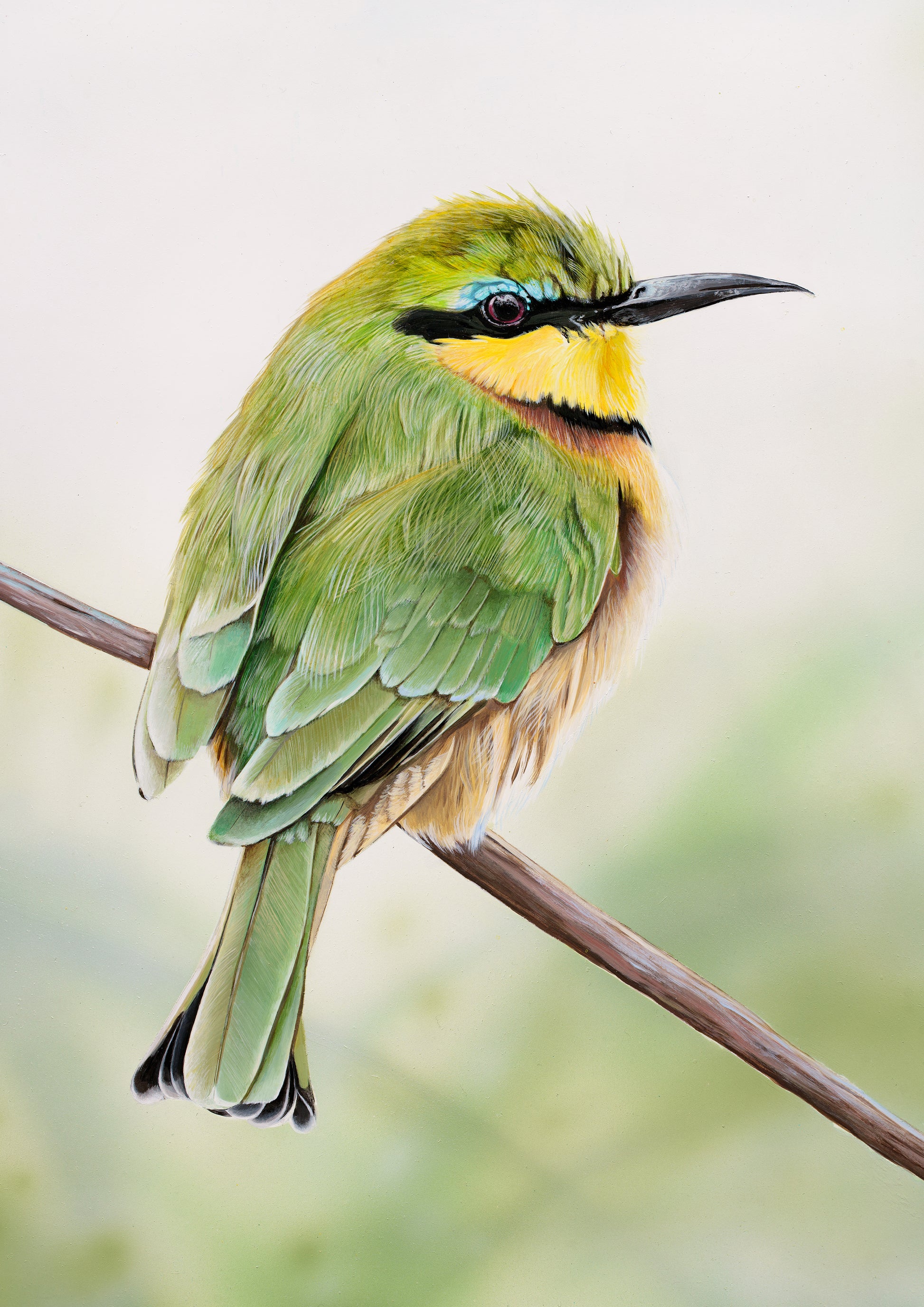 I love painting bee eaters! (I think this is my 3rd one!) I think they look like they are wearing little bandit masks. And they have such lush hues of green and yellow in their feathers.